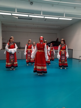Kiinalainen tanssiryhmä kerhossa 25.2.2025